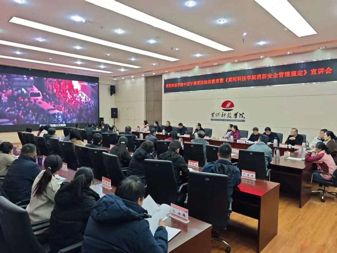 为学习贯彻党的二十届四中全会精神,统筹发展和安全,推动学校高质量发展,11月18日,我校在信息大楼一楼会议室召开中层干部消防法治教育暨《黄河科技学院消防安全管理规定》宣讲会。副校长罗煜主持会议并讲话,各职能部门、各学部(学院)、各直属科研机构和学校附属单位主要负责人,以及各单位(部门)安全监督员参加会议。