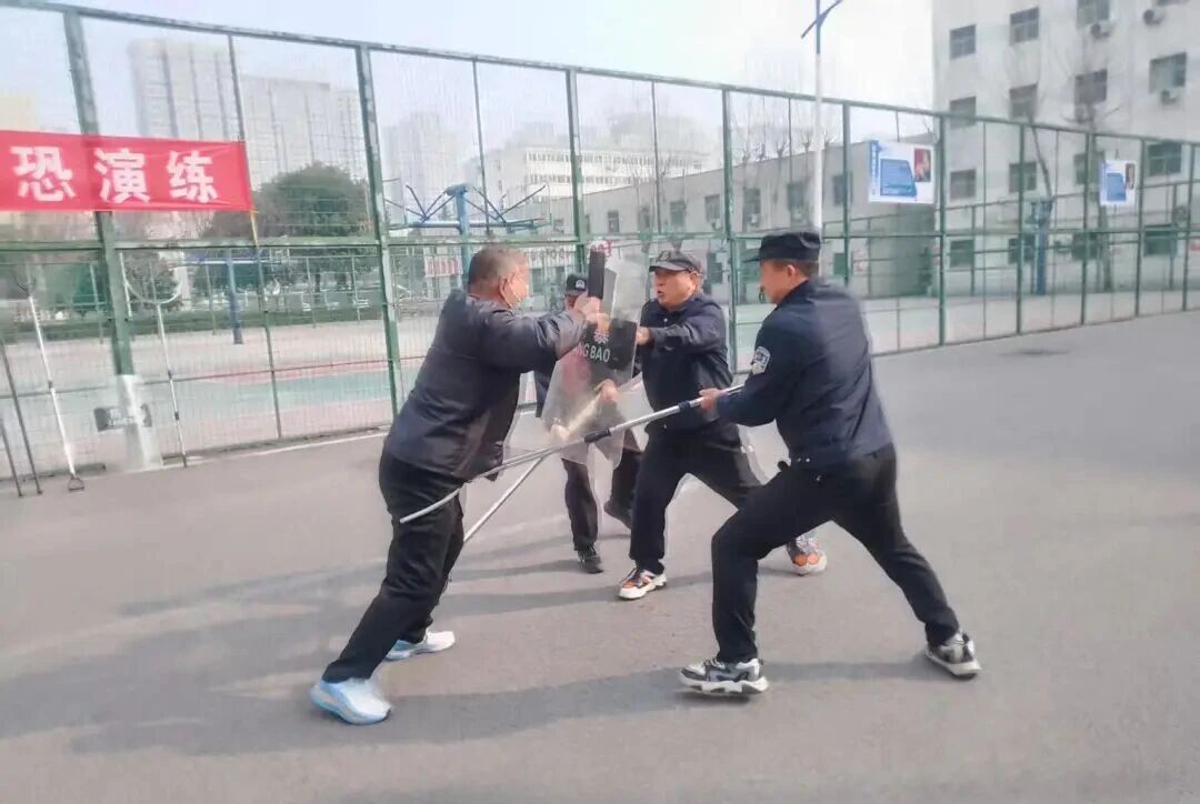 为切实提升校园应对突发暴力事件的应急处置能力,筑牢校园安全防线,3月10日,黄河科技学院北校区组织开展了反恐防暴应急演练。本次演练由北区保卫科科长王伟担任总指挥,特邀黄河科技学院附属中学法治副校长、淮河路派出所社区民警卢世达到场指导,全体安保人员参加演练。