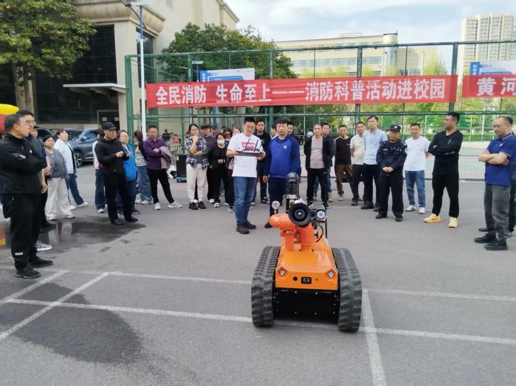 附属中学党支部副书记贵鑫致辞欢迎并作动员,法治副校长、淮河路派出所社区民警卢世达警官强调消防安全重要性。指战员讲解火场模拟体验小屋逃生流程,教职工依次体验火场逃生。随后,指战员示范灭火器、自救呼吸器使用方法,展示消防车救援功能及水带连接、战斗服穿戴等,并讲解消防救援机器人操作,微型消防站人员参与体验。北区保卫科科长王伟作总结。